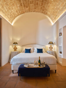Questa eredità storica è esaltata da un arredamento curato nei minimi dettagli, che fonde uno stile classico a linee moderne e funzionali. Le tonalità rilassanti della terra e del design si riflettono in ambienti pensati per il benessere totale: ogni stanza dispone di letti king size impreziositi da biancheria di alta qualità, bagni privati con ampie docce e un patio esterno privato e attrezzato, ideale per godersi momenti di relax all’aria aperta in totale riservatezza.